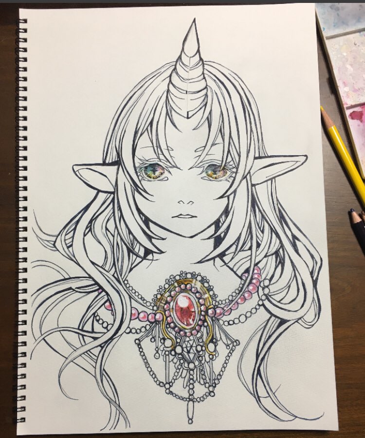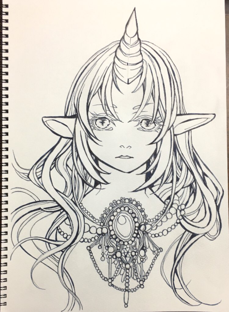 #イラスト #オリジナル #絵描きさんと繋がりたい #絵描きさんとつながりたい #アナログ ユニコーン女子描いた。 小説、続き書きます。