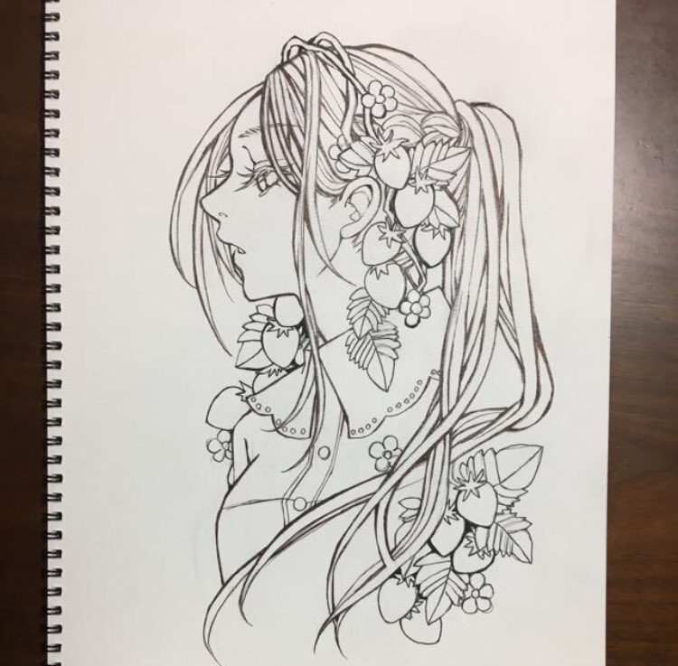 #イラスト #アナログ #オリジナル #絵描きさんとつながりたい #絵描きさんと繋がりたい 今度、いちご狩りに行く。