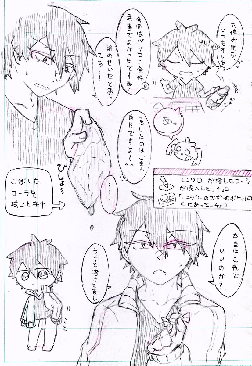 3 10 バレポス #kgpr_FA 『シンタローが零したコーラが混入したチョコ』 『シンタローのズボンのポケットの中にあったチョコ』 ありがとうございました!✨ 描いた人のヘキを感じる絵になってしまった気もするが🥤💻 22/04/09 03:44