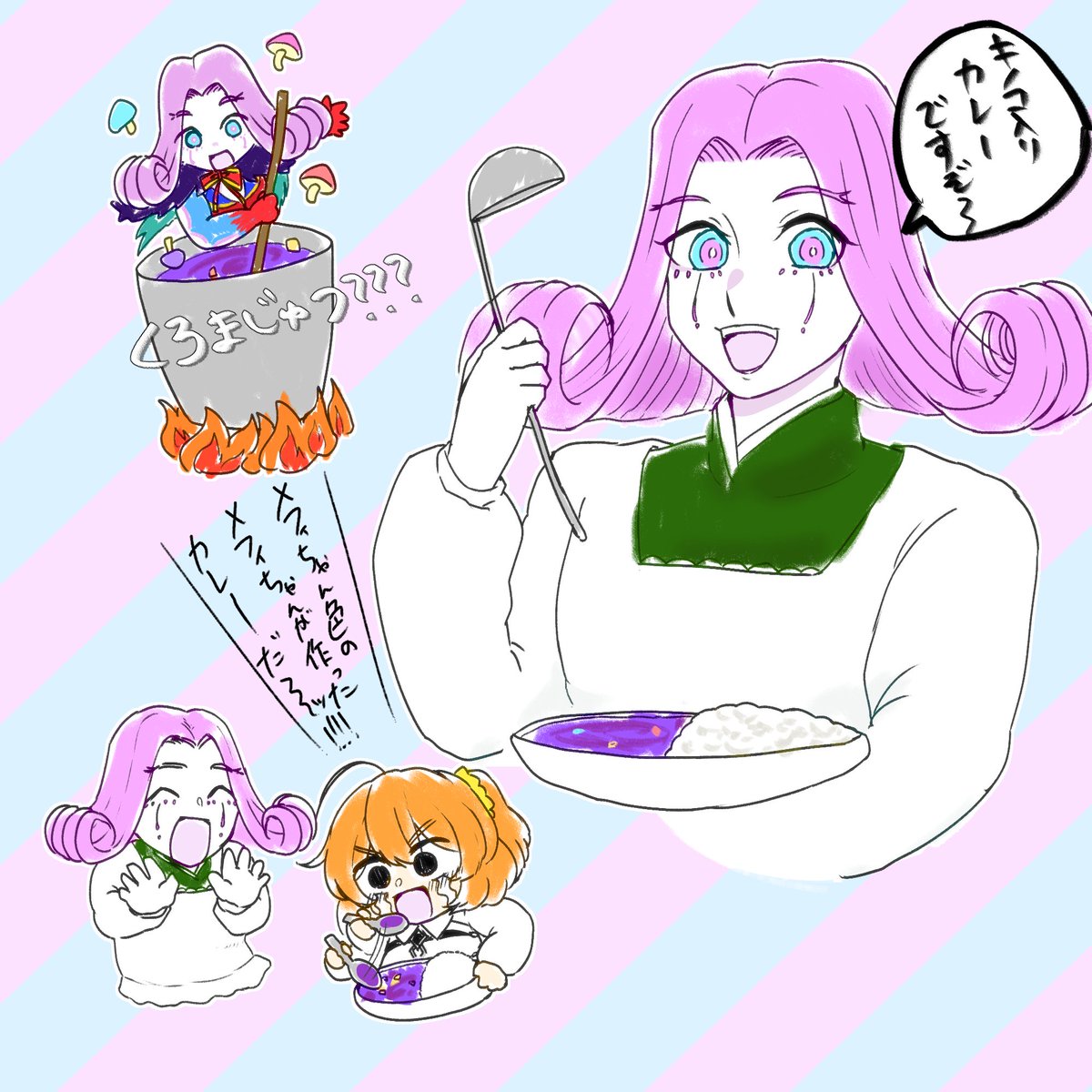 メフィ祭エアスケブで描きました、毒キノコお料理警戒心ゼロメフィぐだ~~~ #週刊メッフィー