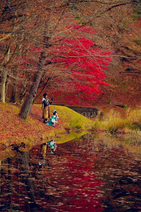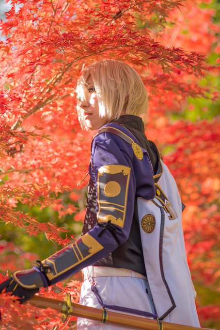 ※コス写 刀剣乱舞 髭切@cra_shie p:ユキオ 紅葉綺麗だったな~~~🥳🥳 シエさんの髭切も綺麗だったよ~~~🥳🥳