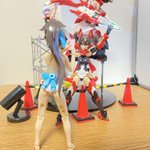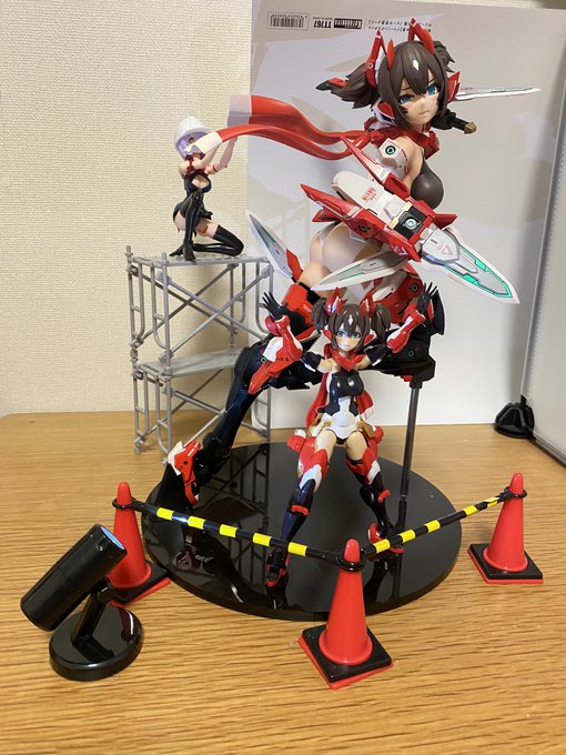 忍者の2/1フィギュアに三角コーンとかライト置いて某お台場の立像みたいにしてみた #メガミデバイス