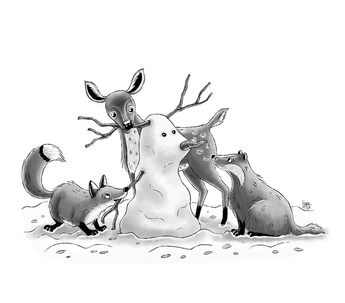 4 10 Finally, an #inktober piece! 😅 Day 11: Snow ⛄ . #Inktober2019 #snow #kidlitart #ChildrensBooks #Illustrator #illustration 19/10/11 23:55