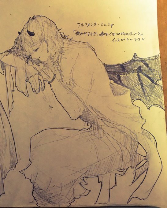 ミュシャの画集をパラパラしながら描いた🍎🍥 #あらき画廊伝 #なるせかいたよ #アルフォンス・ミュシャ