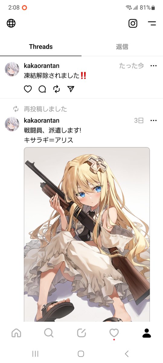 スレッズの凍結、無事解除されました!!!!!