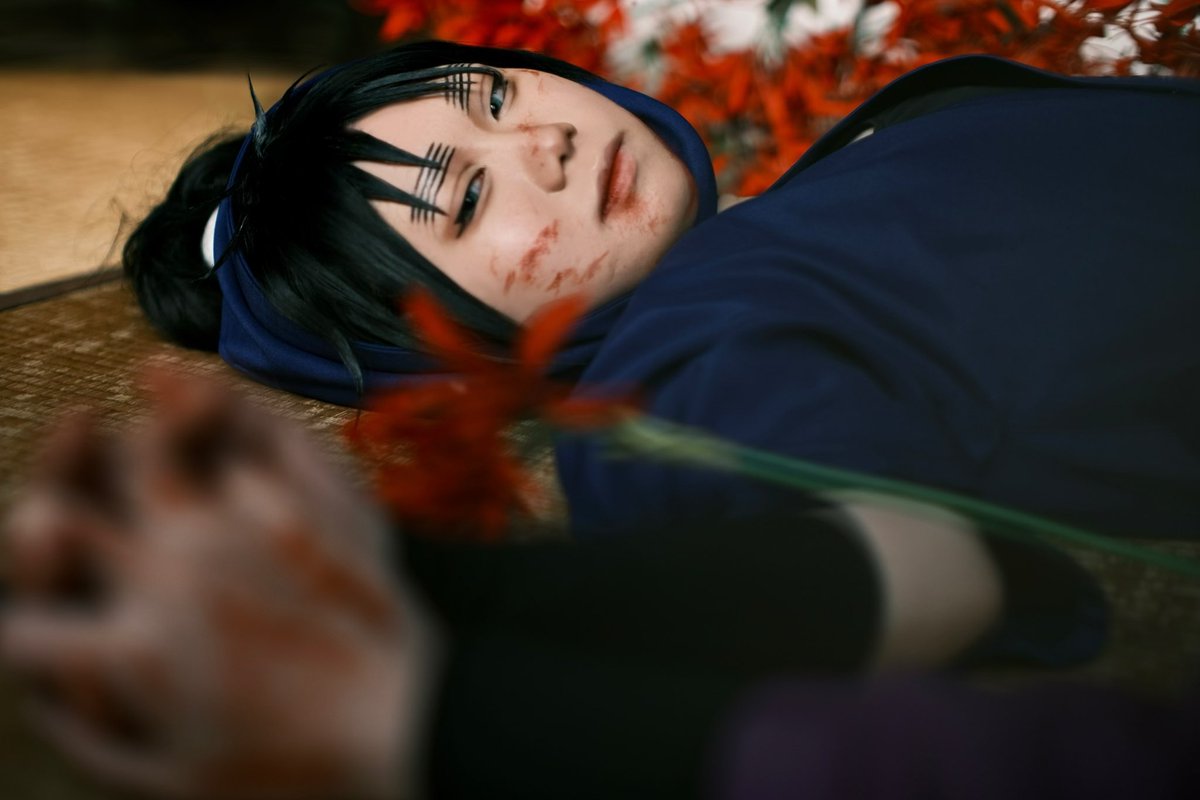 ⚠︎︎血糊 【⚠︎コスプレ/Cosplay】 【忍たま/RKRN】 久々知兵助 ▶︎ あーちゃん 斉藤タカ丸 (手)▶︎ 柊(@Hiiragi__ragi ) ー 彼岸花 ー 📸ゲンゲン さん(@gaingain123 )