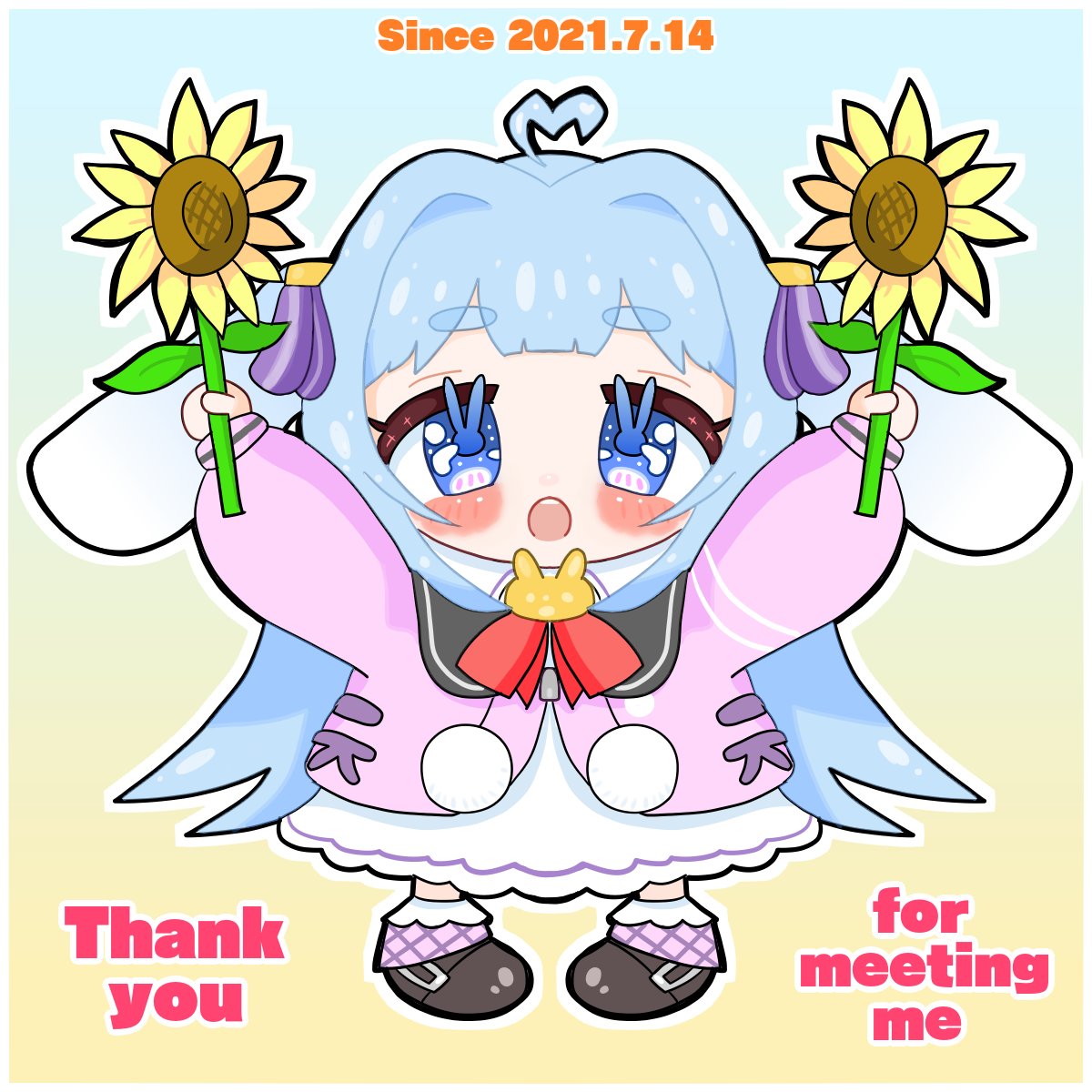 #ショコラのお絵かき教室 ショコラちゃんと出会って1年が経ちました。 ころちゃんに教えて貰ったけど、7月14日はひまわりの日らしい!良い日に出会った! 1年間いっぱい笑顔にしてくれてありがとう! 僕、口角炎でワセリン塗ってるからさっきの話笑ったよ。変なおそろっち!
