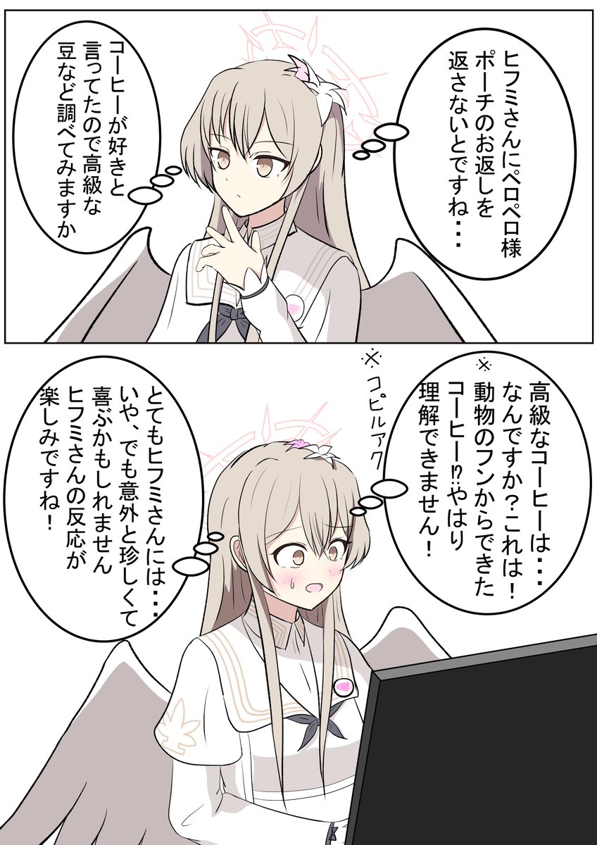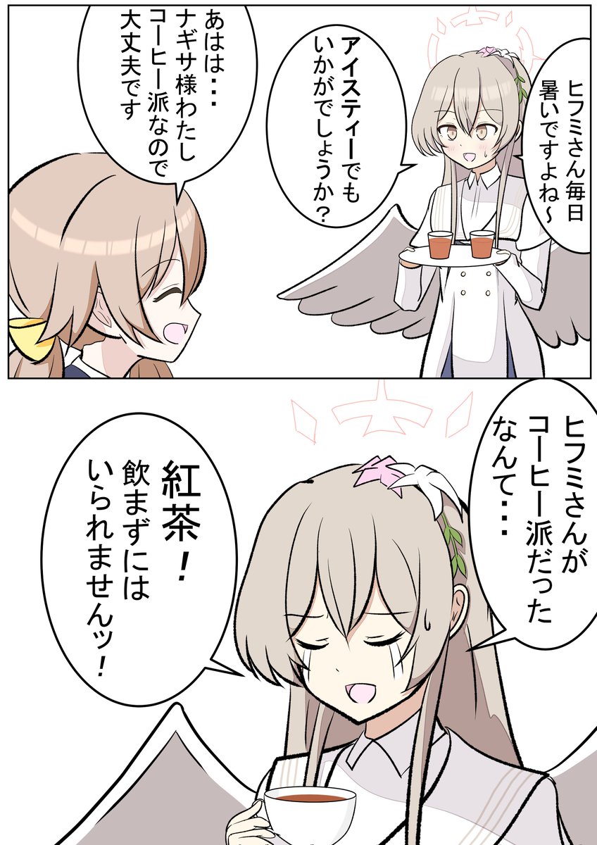 ミカ「ナギちゃんもコーヒー飲めるようになれば良いじゃん?」 ナギサ「あんな泥m...いえ、苦いものとても飲めませんね」 セイア「まず相手を理解しようとしない、そういう所だよナギサ」 #ブルアカ #BlueArchive