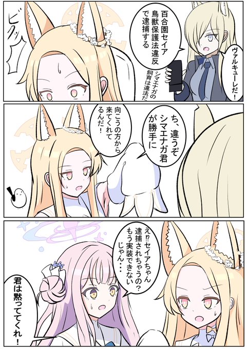 セイア「シマエナガくんには餌付けしてないから大丈夫だ!」 ミカ「え!?ネグレクトじゃん!セイアちゃんひどい!!」 ナギサ「セイアさんには翼がありませんからね」 #ブルアカ #BlueArchive