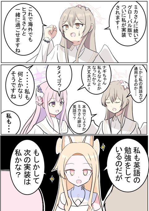 ナギサ「き、きっと近いうちに実装ですよ!」 ミカ「セイアちゃん...勘で分かるんじゃないかな?☆」 セイア「来月くらいに海外デビューしてしまうかもしれないね」 #ブルアカ #BlueArchive