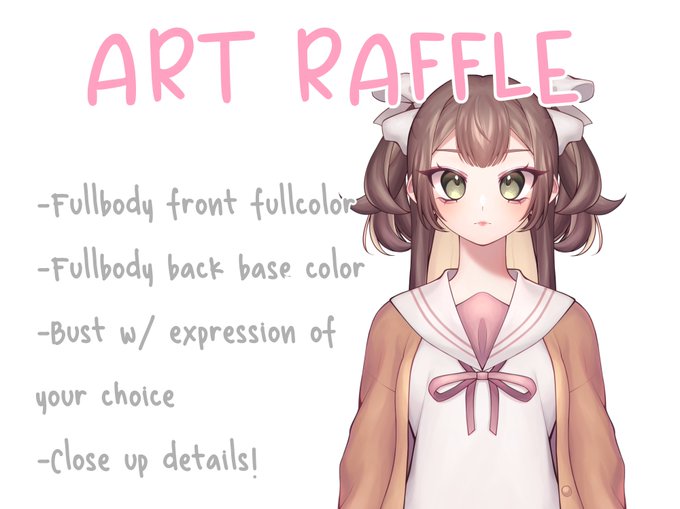 — ART RAFFLE ! ty for 3k followers ♡ 1 winner : character reference sheet additional winner if 200 rt : pngtuber to enter ! - follow, like & rt - reply with a pic of ur oc/sona/etc! ends on february 25th. #artraffle