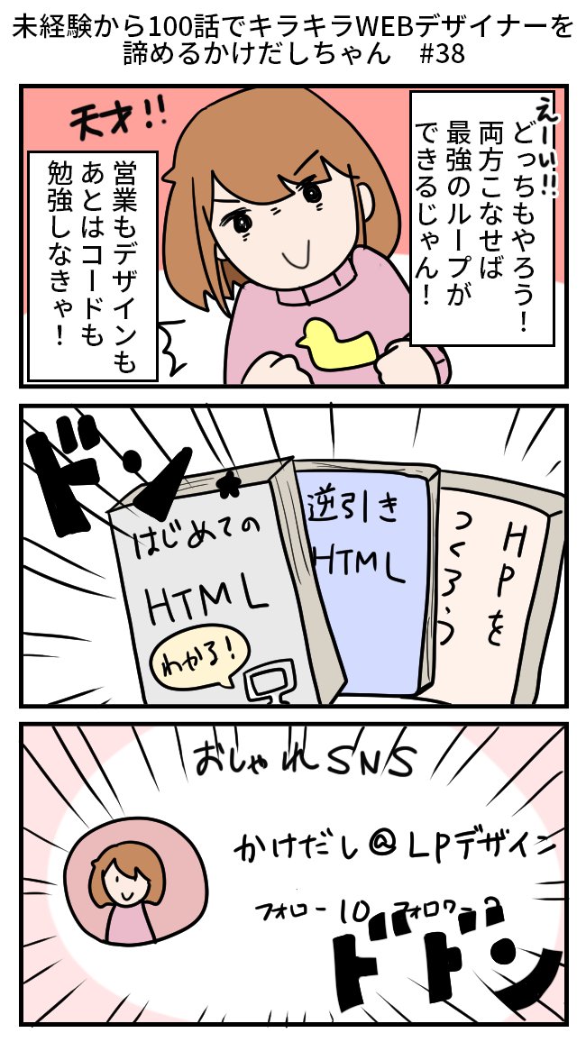 【再掲】未経験から100話でキラキラWEBデザイナーを諦めるかけだしちゃん その38 👩「営業の手段を増やすために、おしゃれSNSも始めてたんだ~!」 🧑💻「1つ1つがおろそかにならないようにね?」 #漫画が読めるハッシュタグ