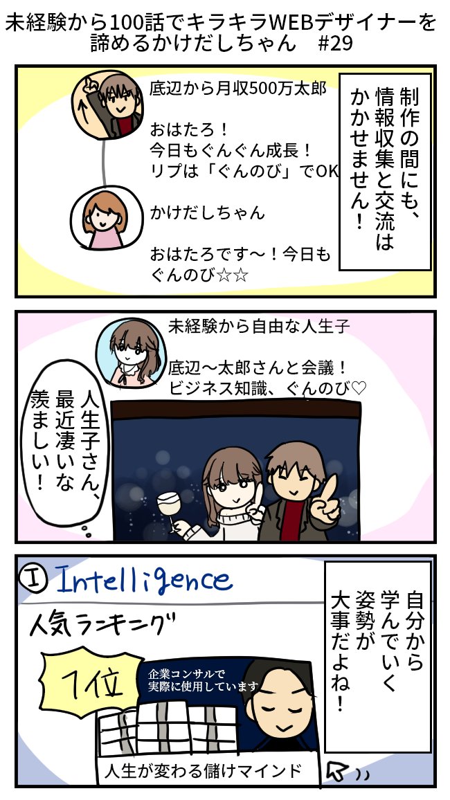【再掲】未経験から100話でキラキラWEBデザイナーを諦めるかけだしちゃん その29 👩「リプは〇●でOK!って、遠い存在の人に気軽にリプ出来るからついリプしちゃう」 🧑💻「仲良くなってどうするの?」 #漫画が読めるハッシュタグ