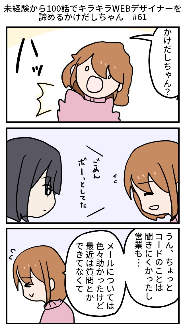 【再掲】未経験から100話でキラキラWEBデザイナーを諦めるかけだしちゃん その26 🧑💻「何も言われていない裏で、信頼を無くしてるかもね」 👩「模写は練習にはなるけど営業に使うものじゃないって、今でも思うよ」 #漫画が読めるハッシュタグ