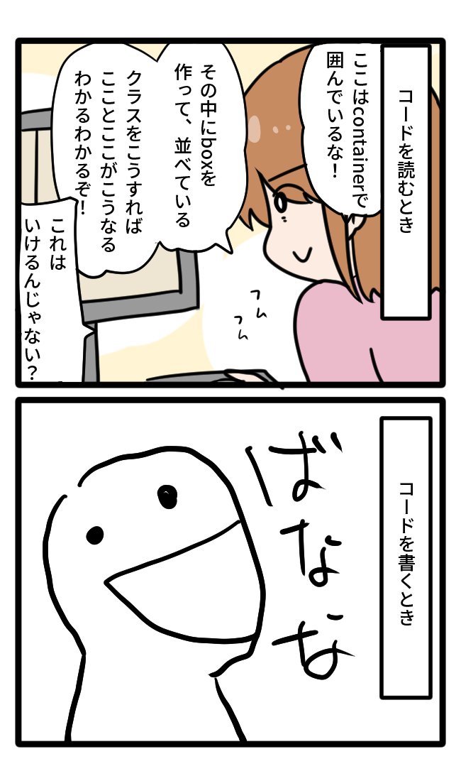 【再掲】未経験から100話でキラキラWEBデザイナーを諦めるかけだしちゃん その40 🧑💻「テンプレ配布より、コードを書けるようにするのがスクールじゃない? 👩「うーん…ただテンプレがそのまま使えたことは殆どなかったから、コードが書けた方がいいのは間違いないね!」 #漫画が読めるハッシュタグ