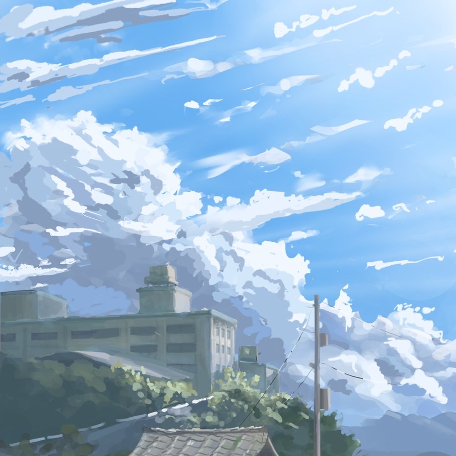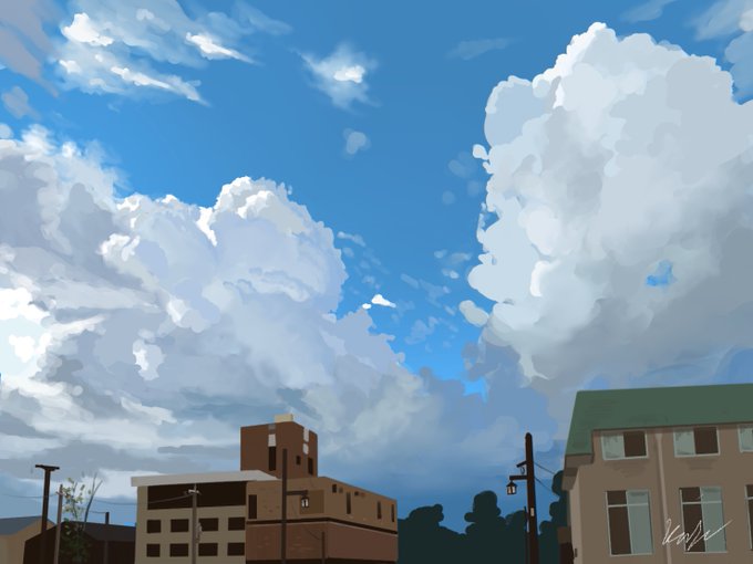 44 524 写真模写。夏の雲は形が複雑。 22/02/22 09:17