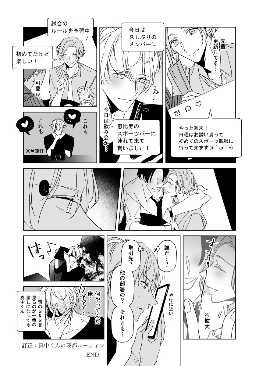 会社員の後輩×先輩👔🌃🥂⌚️💼💻👞 真中くんと瑛にぃちゃん🖤🐺🐶🤍 『真中くんのナイトルーティン🌃🍸』 #強面包容力最強男子メンヘラ生活能力低め男子 #真瑛 #創作BL #創作BL漫画 #漫画が読めるハッシュタグ