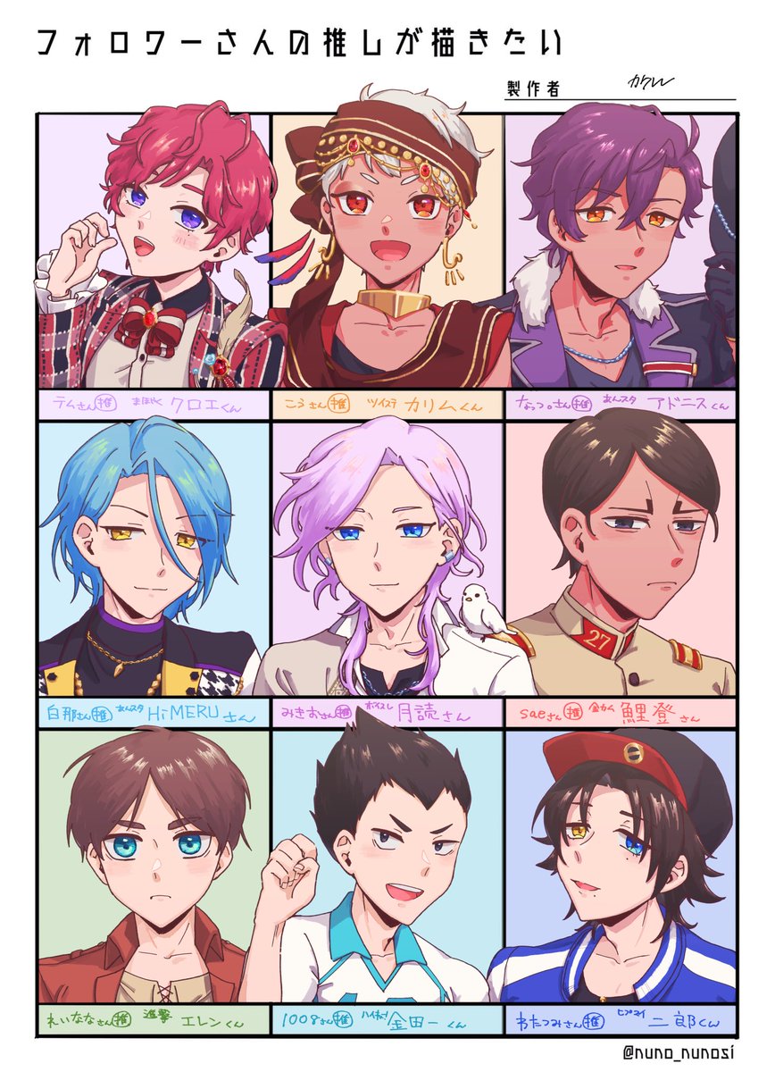 9 21 描かせていただきありがとうございました! 描いたことのない方ばかりで楽しかったです🥳 21/06/08 04:14