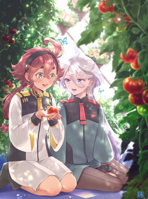 In the greenhouse🌱🍅 「食べても、いいんですか……?」 「あんたが世話して出来たやつだからね」 #水星の魔女 #スレミオ