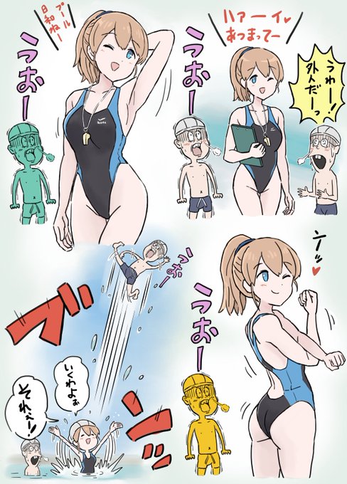 夏になると来てくれる水泳のインストラクターさん。プールでやってくれるたかいたかい(ほんとに高い)が名物 #艦これ