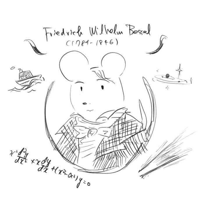 今日のお題はVesselとのことで、科学者のBesselさんをご紹介。貿易会社に勤め数学と天文学を独学、1807年のハレー彗星の出現を予測しました。電磁気学や量子力学に登場する「ベッセル関数」に名前を残しています。 #inktober #inktober2021day3
