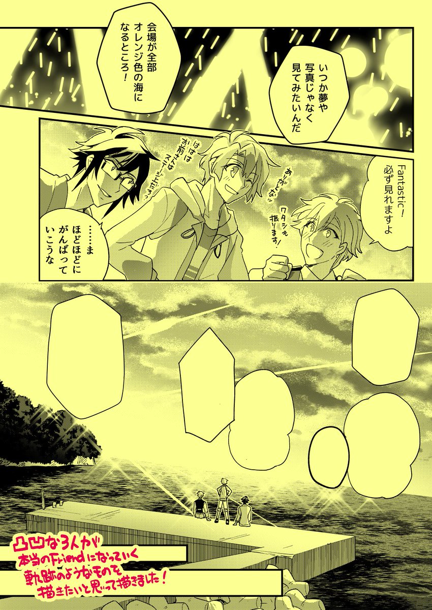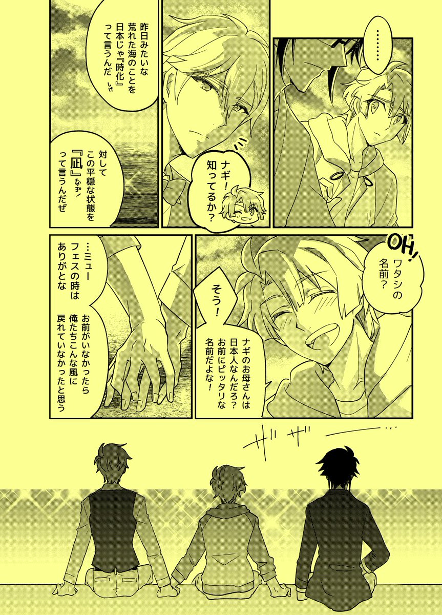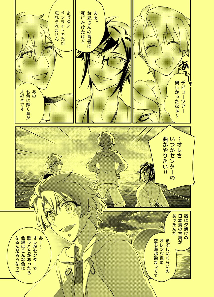 #アイナナ非カプ二次紹介祭 素敵なタグ、何を紹介しようか迷ったのですが、ピタゴラの日💛💚🧡なのでピタゴラ小旅行本で! アイドルとして自信がなかったり、隠していることがあったり…と関係性を探り合っていたデビュー直後〜4部終わり頃の変化を描いた本です! 全文→pixiv.net/artworks/90993…