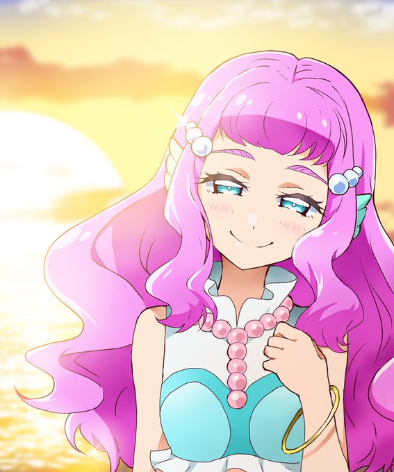 人魚姿も描きたかったのでもう一枚🎉 海と夕焼けとか海と月とか、シチュエーションとして好き。トロプリでは度々見られて嬉しかったなぁ。 #キュアラメール生誕祭2022 #ローラ・ラメール生誕祭2022 #precure #トロプリ