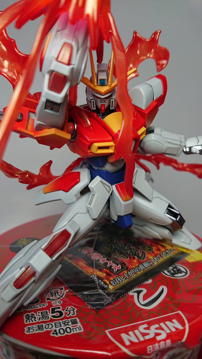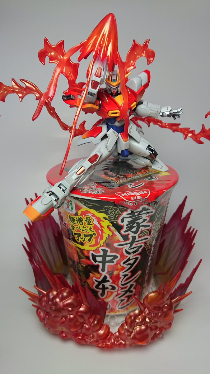 次元覇王流ぬーどるストッパー完成しました! 今流行りのぬーどるストッパー+ガンプラッス!炎エフェクト増し増し!もちろん蒙古タンメン! (ただ乗せただけじゃなくていろいろいじってます) #ガンプラの画像貼るとRTされると聞いて #ガンプラはどんな自由な発想で作ってもいいんだ