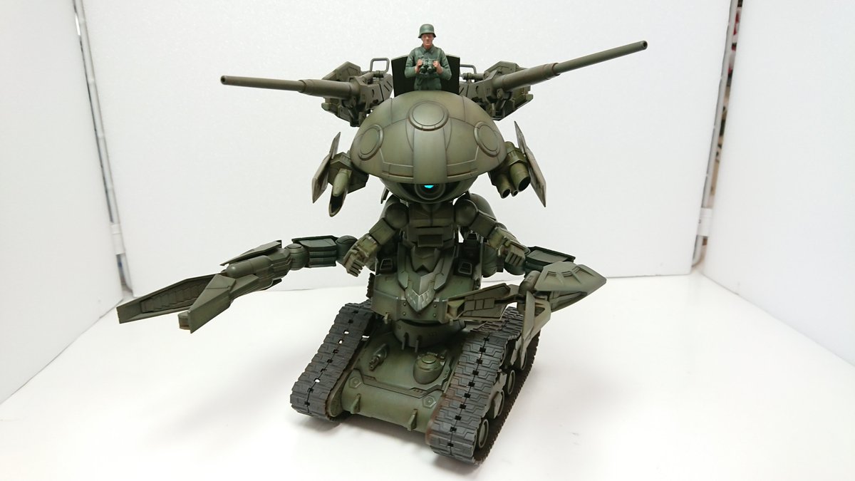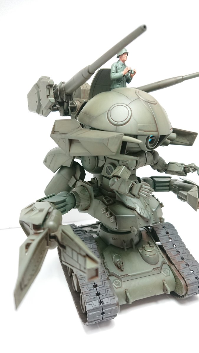 ジ・ウォドム完成しました\(^o^)/ ガンタンクの機動性と火力を足したウォドムポッド、世界大戦でも活躍したとかしないとか… 緑は二色でシャドー、ウォッシングしました。 #ガンプラはどんな自由な発想で作ってもいいんだ #ガンプラの画像貼るとRTされると聞いて