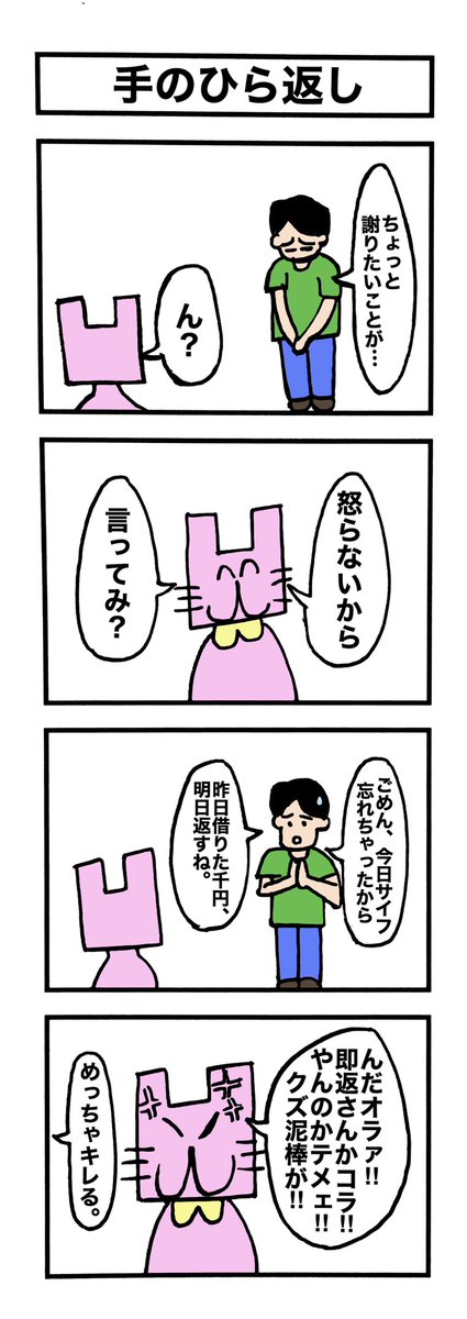 1 2 #72「手のひら返し」 #4コマ漫画 #漫画が読めるハッシュタグ #嘘はだめ #角張うさぎちゃん 20/09/13 20:35