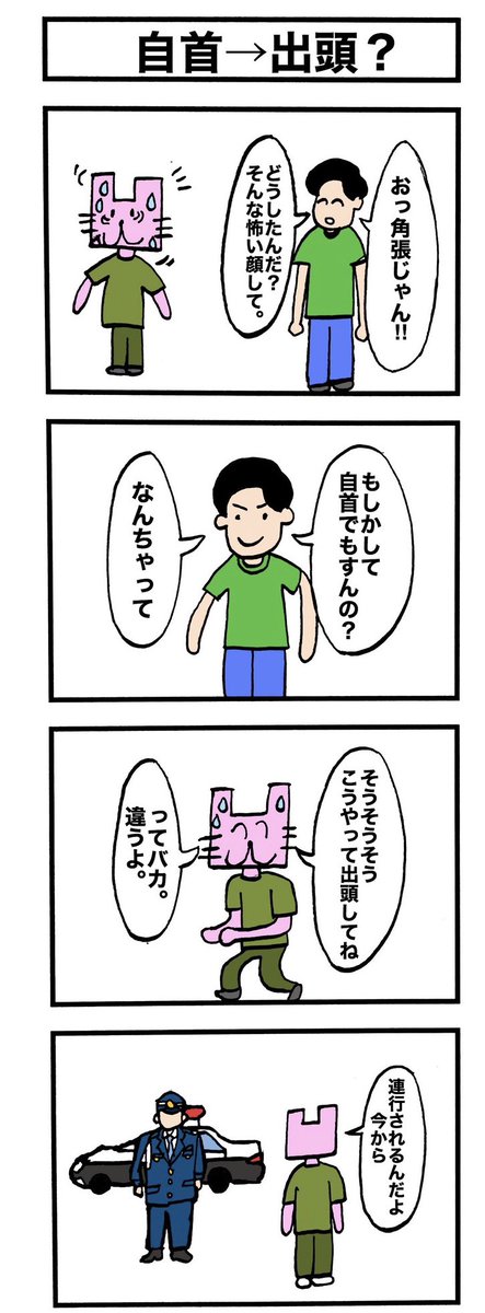 1 2 #77「自首→出頭?」 #4コマ漫画 #漫画が読めるハッシュタグ #何したんだ #角張うさぎちゃん 20/09/18 21:10