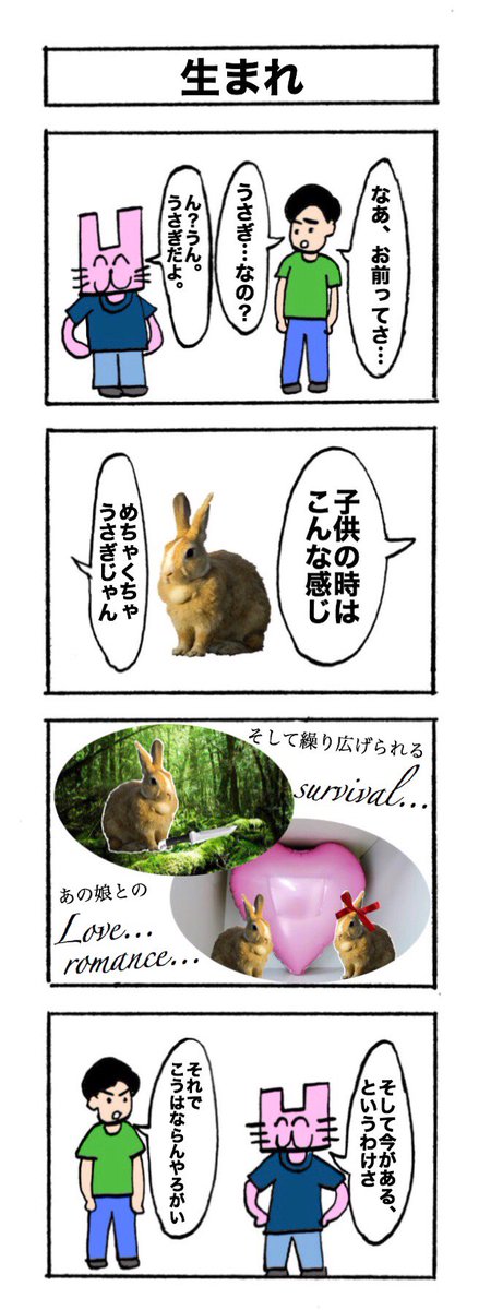 1 4 #78「生まれ」 #4コマ漫画 #漫画が読めるハッシュタグ #写実主義 #角張うさぎちゃん 20/09/23 21:53