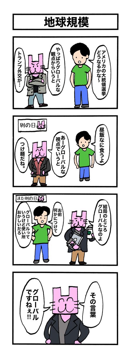 1 4 #81「地球規模」 #4コマ漫画 #漫画が読めるハッシュタグ #グローバル #角張うさぎちゃん 20/10/01 20:00