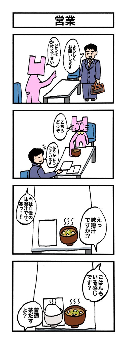 1 5 #83「営業」 #4コマ漫画 #漫画が読めるハッシュタグ #うまい #角張うさぎちゃん 20/10/04 19:59