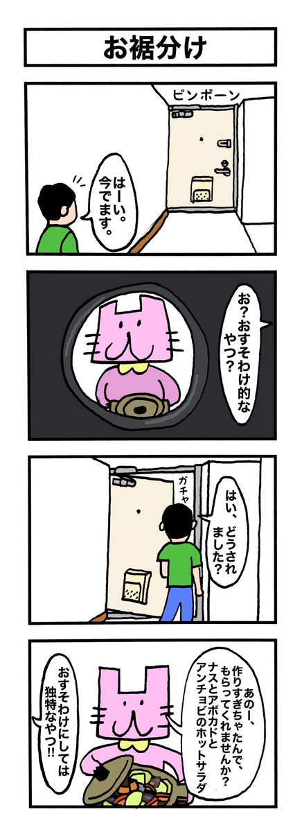 2 2 #90「お裾分け」 #4コマ漫画 #漫画が読めるハッシュタグ #余らすな #角張うさぎちゃん 20/10/14 20:00