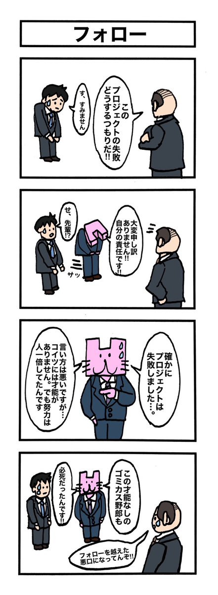 #91「フォロー」 #4コマ漫画 #漫画が読めるハッシュタグ #悪意無 #角張うさぎちゃん