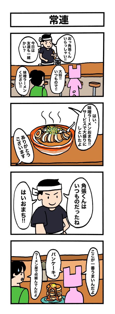 #94「常連」 #4コマ漫画 #漫画が読めるハッシュタグ #作る方もあれ #角張うさぎちゃん