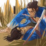 added to that old sketch i did, kiryu / ryoma and majima / okita