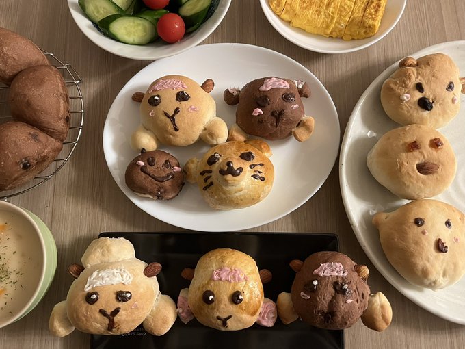 48 389 今日の晩ごはん。 手作りパン、ホワイトシチュー、サラダ、厚焼き卵。 キャラクターパン。子ども達が頑張って作ってくれました! この前よりは上手くできたかな🤔 #モルカー #モルカーファンアート #手作りパン #おうちごはん 22/09/10 21:34