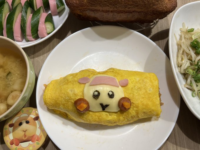 45 431 今日の晩ごはん。 モルカーオムライス、お麩とわかめのおみそ汁、もやし炒め、きゅうりかまぼこ、パウンドケーキでした。 オムライスは全て娘(小6)手作りです😊卵が大変だったね。娘ありがとう😋 DS3話、キラキラ✨して可愛さ倍増でした🥰最高🍎 #モルカー #モルカーファンアート #おうちごはん 22/10/22 20:37
