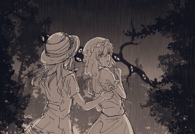 #深夜の真剣お絵描き60分一本勝負 #秘封倶楽部 #東方 #マエリベリー・ハーン #宇佐美蓮子 蓮台野夜行(+45min)