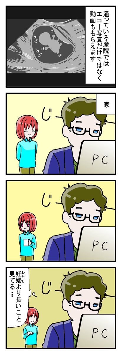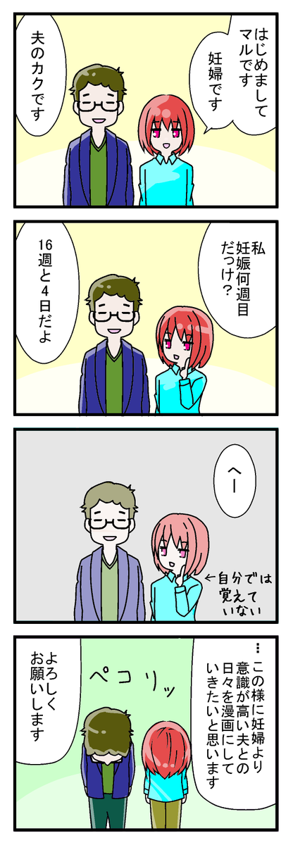 はじめまして 妻が妊娠中の出来事を漫画に描いて何故か私が上げることになりました。よろしければ見ていってください。 #漫画が読めるハッシュタグ #四コマ漫画 #妊娠 #初めてのツイート