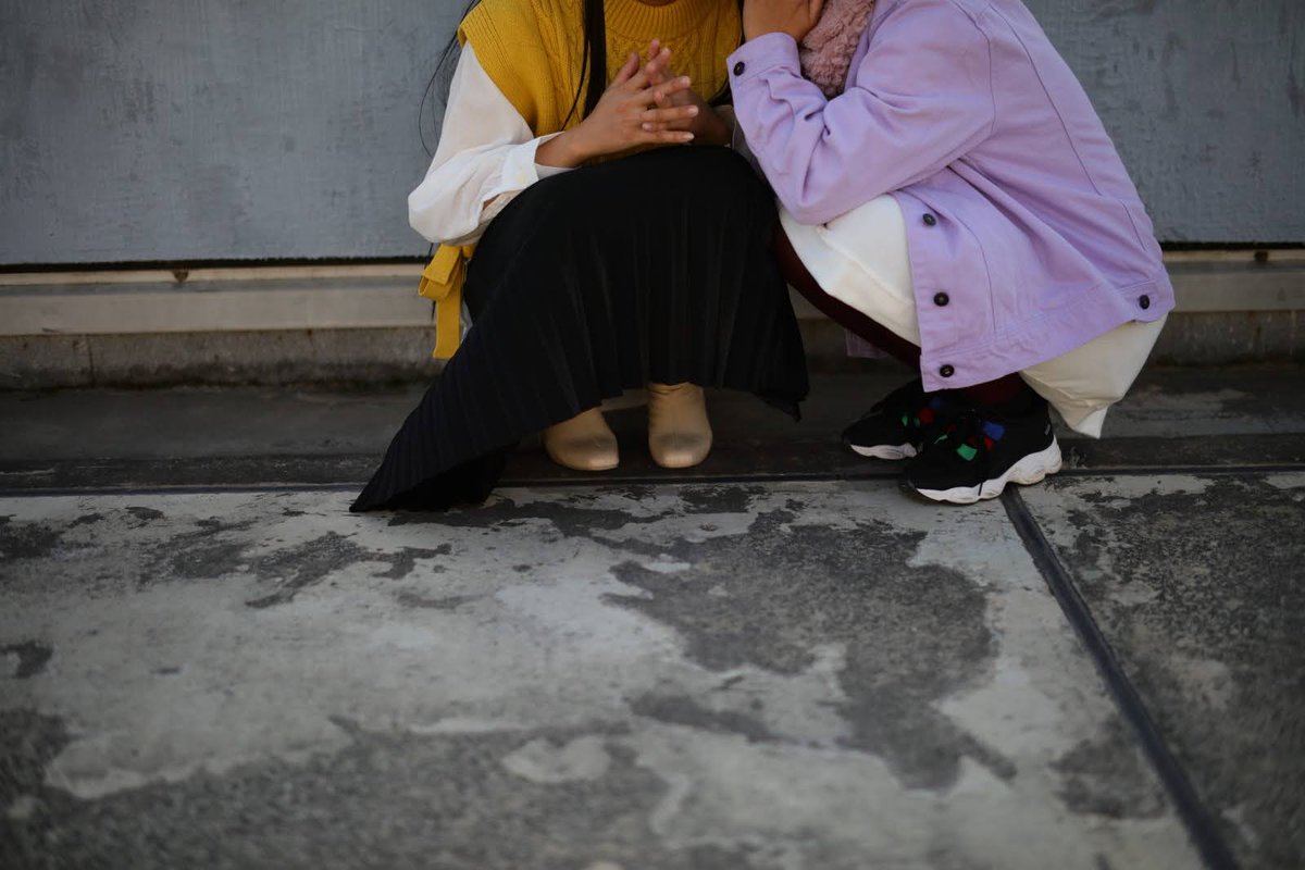 この屋上の2人もエモいから見て #コスメル #旧二葉小学校