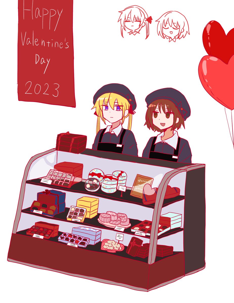 48 167 バレンタインの時期にデパ地下でバイトするやすなとソーニャちゃんの絵です 23/02/14 19:05