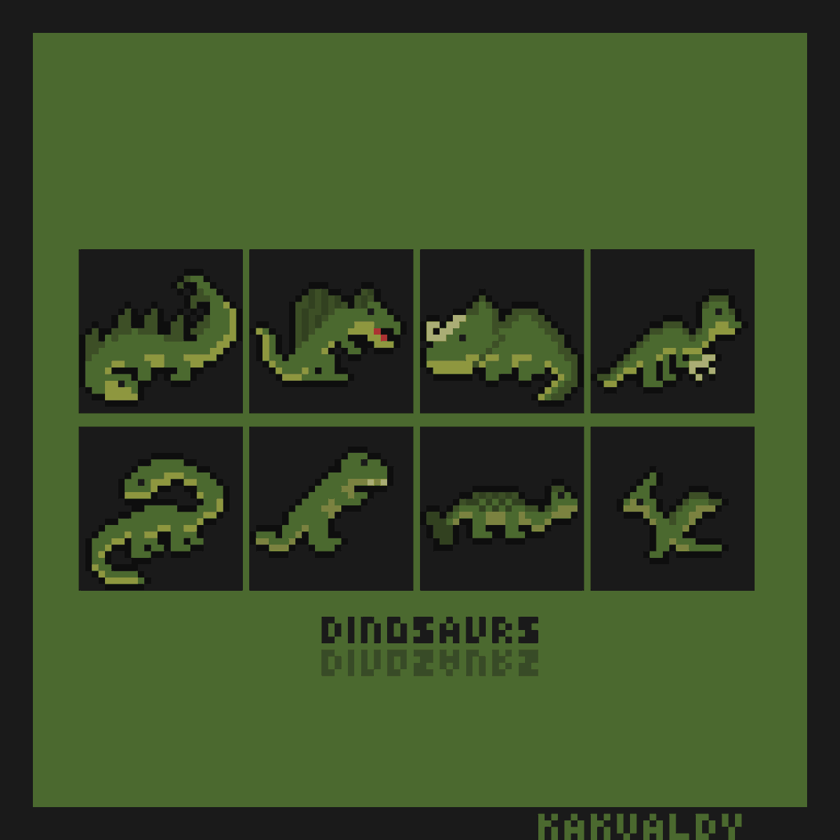 day 21 - 25px Dinos (128 px) @Pixel_Dailies let's be mutual in this new twitter account. #pixel_dailies #pixelart #ドット絵 #aseprite #dinosaurs