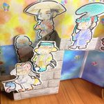 #金カムアナログイラスト部 ポップアップ・百鬼夜行。動きが面白いものではないので静止画。 土方(狐)、永倉(子泣き爺)、都丹(河童)、夏太郎(豆腐小僧)、キラウシ(コロポックル)、門倉(狸)、有古(天狗)、家永(雪女)、牛山(牛鬼)、尾形(猫又)です。