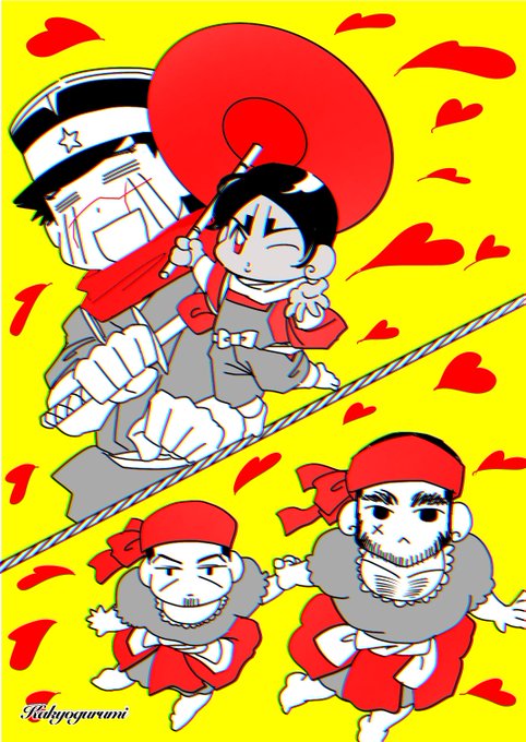 #ゴールデンカムイ版深夜の真剣お絵描き60分一本勝負 お題【赤、または12巻】 12巻てシトン先生の最期やラッコ鍋や温泉回が強烈ですが、その他にも後々人気が出るキャラ満載だったんですね。 中でも宇佐美は普通の青年として登場しておきながら……😂 マタドールをイメージしています🐃