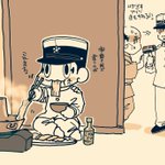 #ゴールデンカムイ版深夜の真剣お絵描き60分一本勝負 お題【白、銀、青】 たぬくらばかりが取り沙汰されてますが、このシリーズのシロクマ軍曹ぬいも可愛いです✨🐻❄️ すみっコのしろくまをイメージして、北極から南下する軍曹🤣
