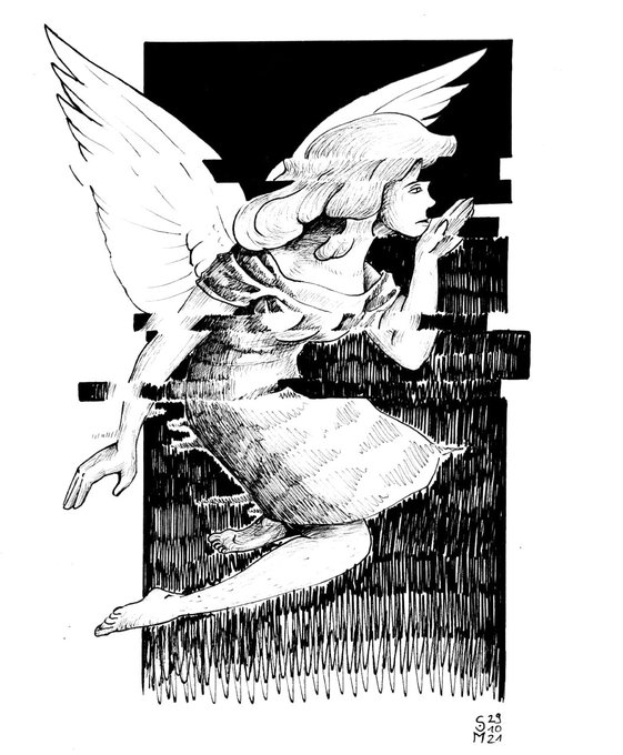 "spark" for day 27 of inktober. A drawing for my friends dnd character Nuriel! #inktober2021 #inktober #inktoberday27 #ink #inking #traditionalart #traditionalartist #dnd #dungeonsanddragons #characterdesign #fantasyart #angel #artoftheday #artwork #art #drawingoftheday