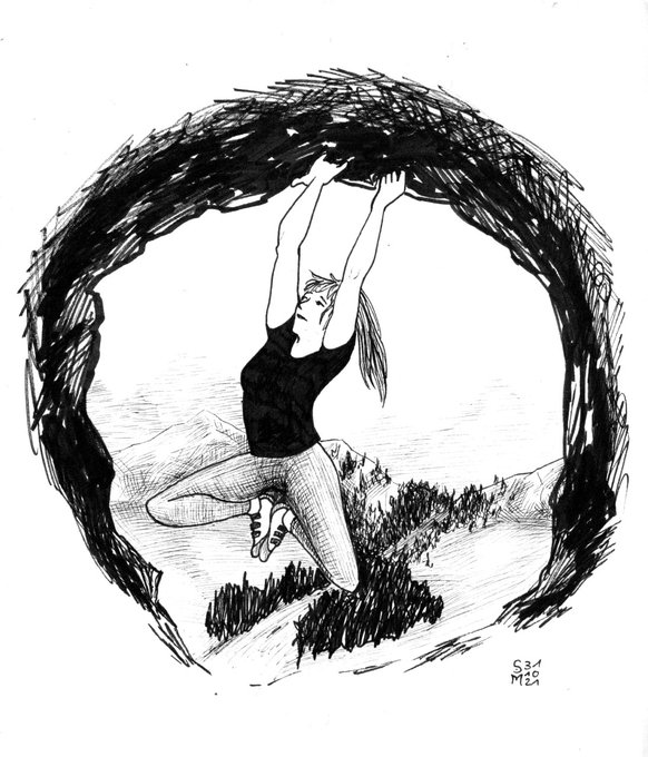 "risk" for day 31 of inktober. . #inktober #inktober2021 #inktoberday31 #drawing #ink #inking #artist #artwork #art #artoftheday #illustration #blackwork #lineart #draw #originalart #blackworknow #climbart #climber #traditionalart #traditionalartist #blacknwhite